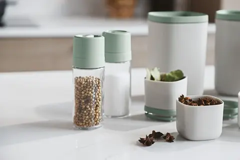 Перец, соль или другие твердые специи — держите их под рукой, чтобы они были легко доступны во время приготовления еды. Благодаря удобному большому отверстию вы можете легко наполнять мельницы. Благодаря регулируемому керамическому механизму измельчения вы можете быстро выбрать, хотите ли вы измельчить травы мелко или крупно. Как и в случае с шейкером, контролируйте количество, поворачивая крышку в разные положения. Наши контейнеры совместимы с большинством систем выдвижных ящиков, представленных на рынке, и идеально подходят для организации вашей кухни! Возможность повторного использования набора важна в более устойчивом мире, где вращающиеся продукты удобнее, чем одноразовые солонки и перечницы из супермаркета. Этот набор, изготовленный из переработанного пластика, станет незаменимым помощником на вашей кухне!